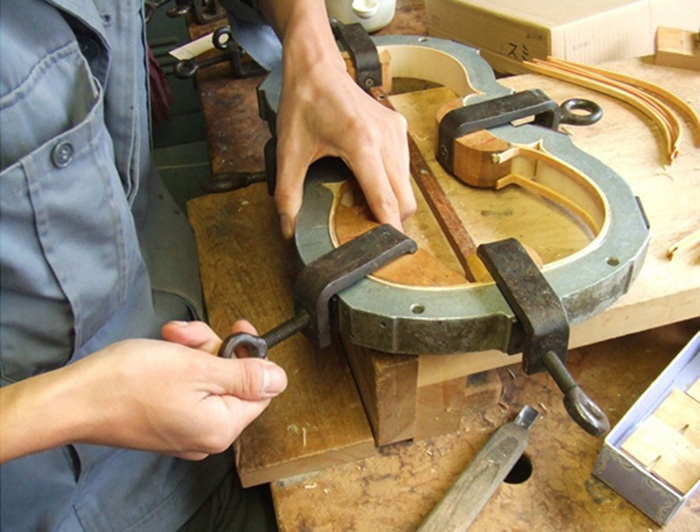 木製肩当ての中でもエレガントさが目を惹くデザインです。
