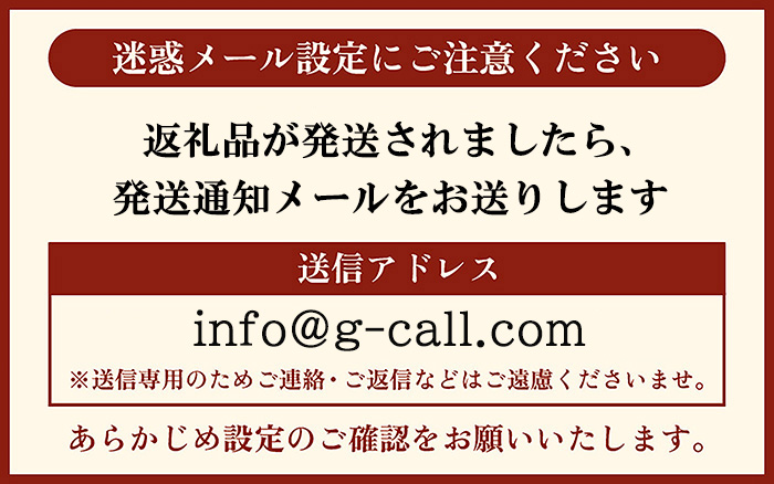 ※返礼品出荷時「出荷のお知らせ」メールをお送りいたします。