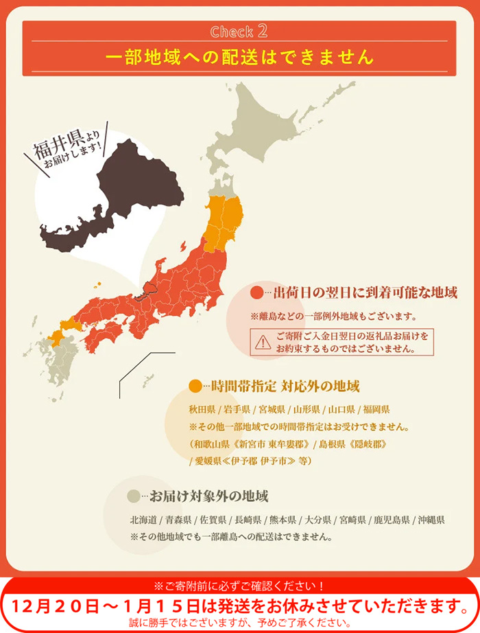 ※越前町内への返礼品発送は対応しておりません。
