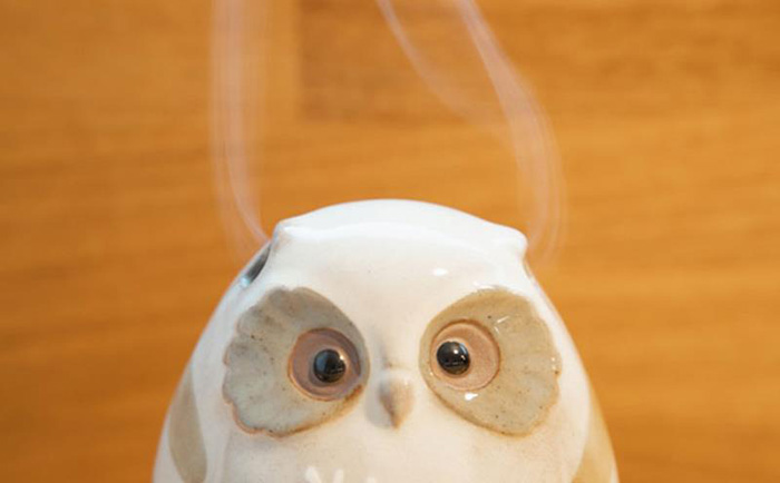 かわいいふくろうの香炉から白檀のふわりとした甘さのある香りが漂います。
