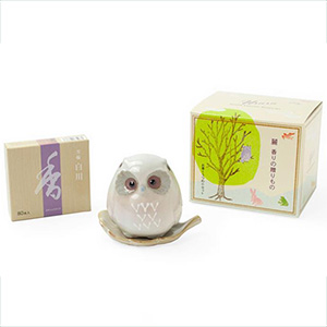 ふわりと漂う和の香り「白川」と小さなふくろうの香炉「ほっほ」とのセットです。