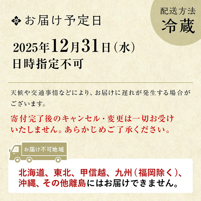 | 発送日 | 寄附受領確認後、2025年12月31日(日時指定不可)