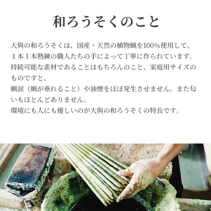 ◆米ぬか蝋使用。煙や蝋垂れが少なく、安心して使える