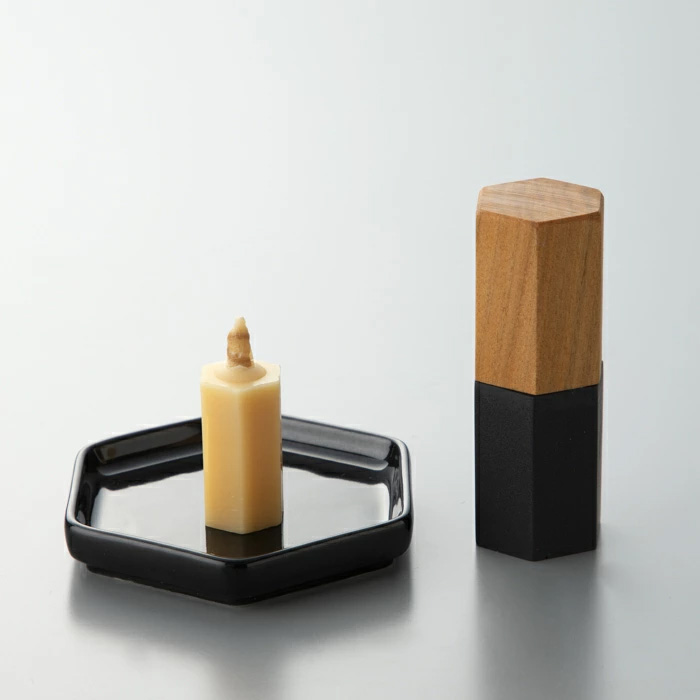 専用の磁器製豆皿と、JESMONITE製の火消しもセットに。