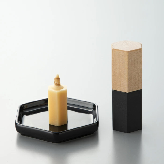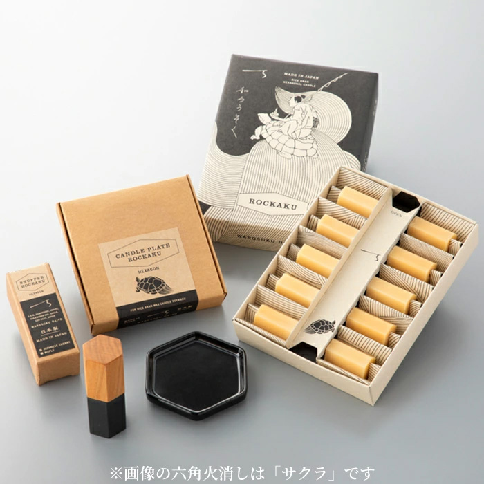 そんな六角形をモチーフにした、環境にも人にもやさしい和ろうそくのセットです。