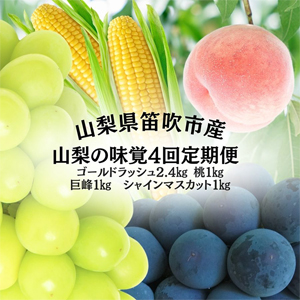 笛吹市のくだもの3種類+とうもろこしゴールドラッシュをお届けします。