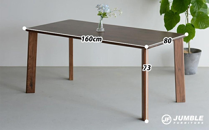 大きめ(幅160cm)のダイニングテーブルは来客にも対応できる安心のサイズ。
