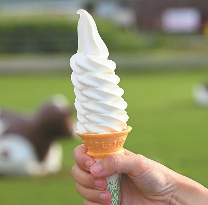 ★大人気の生ソフトクリーム! 搾りたて生乳で作られたミルクたっぷりの生ソフトクリーム。美味しさの秘密は、生乳の多さと生クリームのなめらかさ。