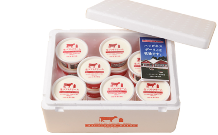 一口食べればミルクの味が口いっぱいに広がります。14個のソフトクリームが隙間なくピッタリと入る専用の発泡スチロールの箱に、超低温業務用スーパー保冷材が入っています。