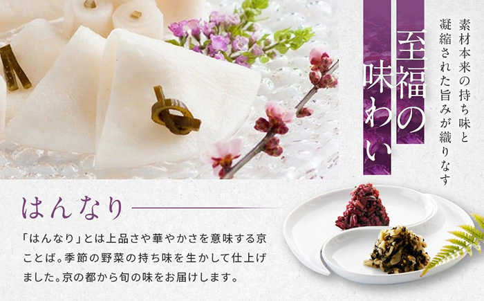 千枚漬(80g)、赤かぶ漬(72g)、志ば漬きざみ・すぐききざみ(各40g)、はんなり漬大根(ハーフ)(1袋)、味みぶ菜(58g)
