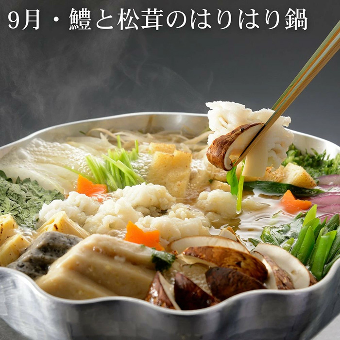 脂ののった鱧と芳醇な香りの松茸を合わせた「はりはり鍋」。