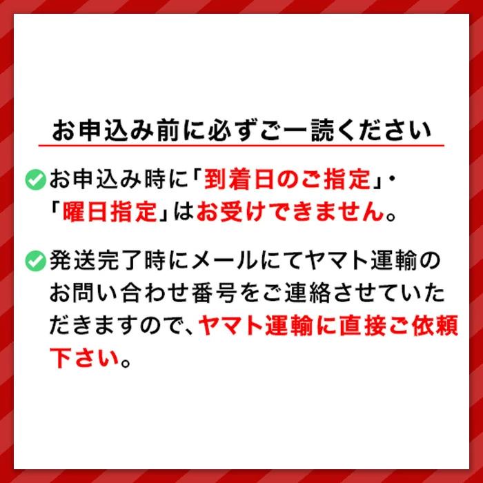 | 発送日 | 寄附受領確認後、初回は10日程度で発送、2回目以降は約1ヶ月ごとにお届けします。