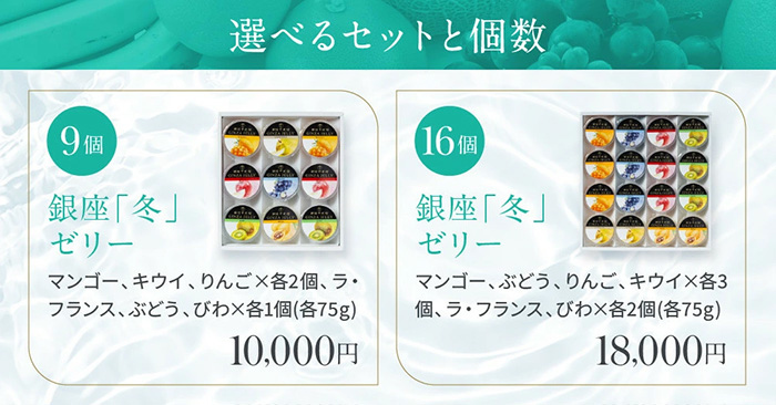 果物の味をそのまま生かし、上品でフルーティな香りと優しい甘みに仕上げた、銀座千疋屋オリジナルのフルーツゼリーの詰合せです。