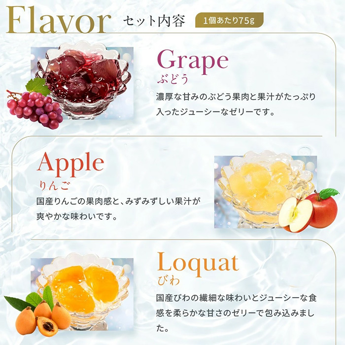 マンゴー、ぶどう、りんご、キウイ 75g×各3個