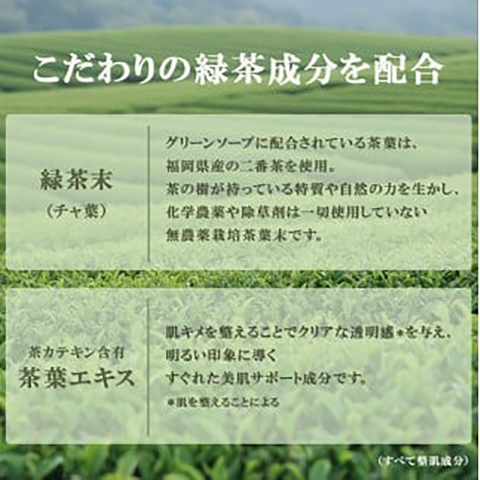 ◆もっちり濃密な泡で透明感*を引き出す緑茶石けん