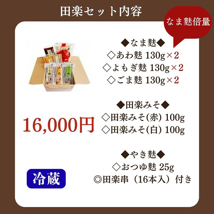田楽みそ赤・白(90日)、おつゆ麸(270日)