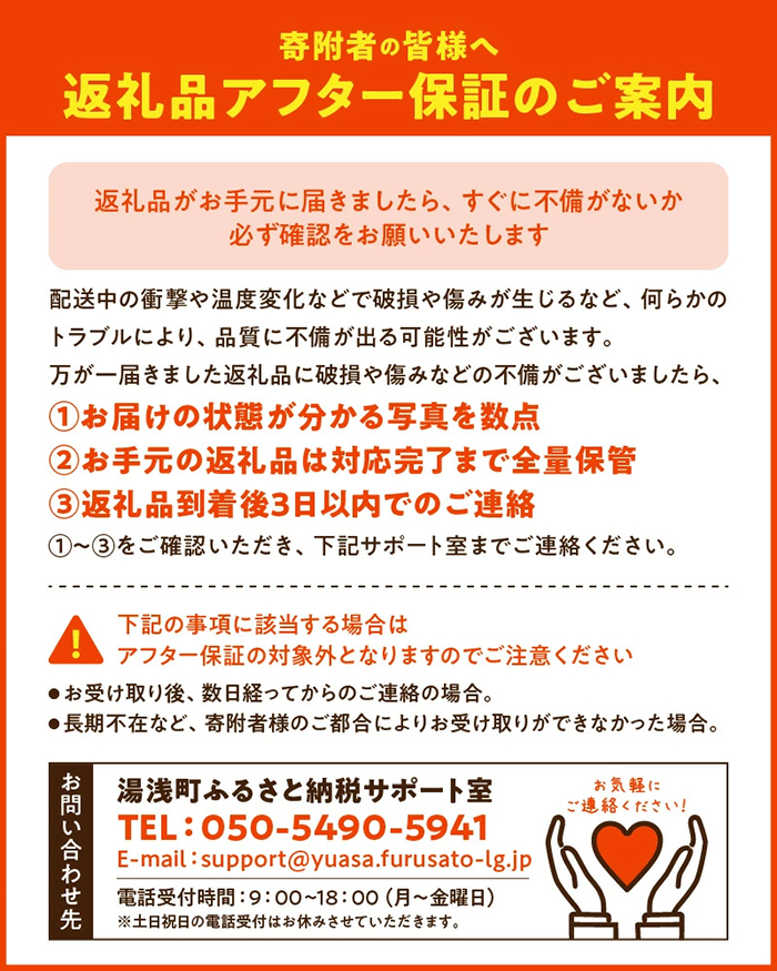※商品につきましては、検品後に発送しておりますが、万一商品に問題がございましたら破棄やお召し上がりになる前にご連絡ください。