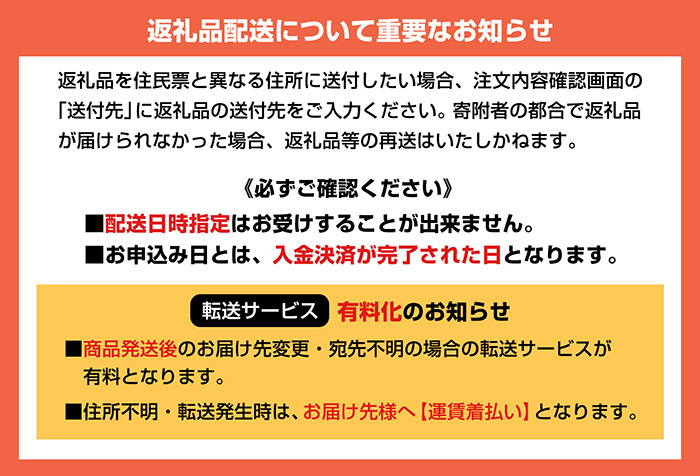 | 発送日 | 寄附金受領確認後、2ヶ月以内に発送予定