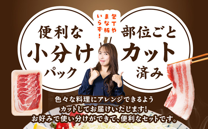 ロースとんかつ、バラ焼肉、肩ローススライス(生姜焼き用)、切り落とし、ロース・バラしゃぶ、全部セットでお届けいたします!