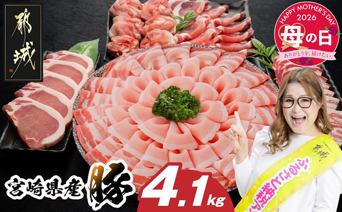 宮崎県産の豚肉4.1kg! とんかつ、焼肉、生姜焼き バラエティ豊かなセット
