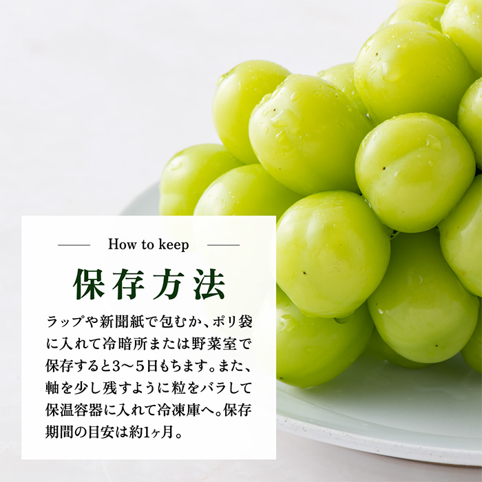 甲府盆地の寒暖差を受けて育った「シャインマスカット」は糖度・甘さ・酸味が絶妙なバランスで絶品そのものです。