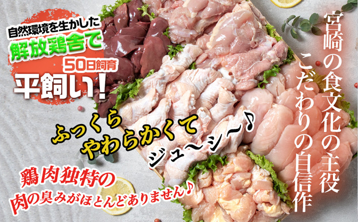 飼育日数約50日。宮崎の雄大な自然環境を活かした平飼い解放鶏舎で育てました。