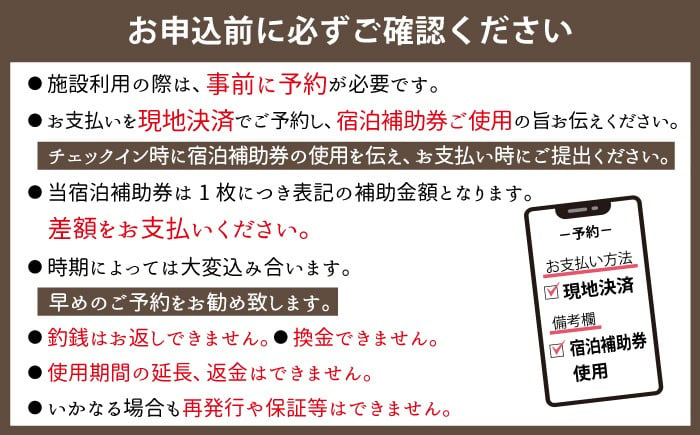 ※施設宿泊の際は事前に予約が必要です。その際には宿泊補助券を使用する旨をお伝えください。