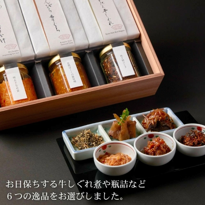京都料亭・下鴨茶寮の逸品より、お日保ちする牛しぐれ煮や瓶詰など6つの逸品をお選びしました。