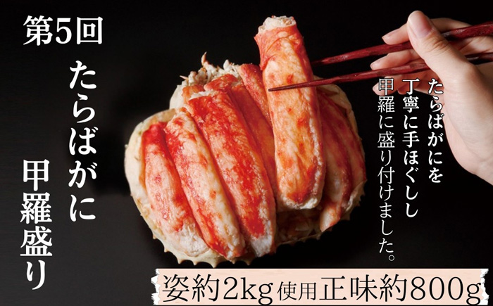 第五回:約2.0kgのたらばがに姿の身を甲羅に盛り付けてあります。個体差はありますが、可食部分は約800g程度になります。