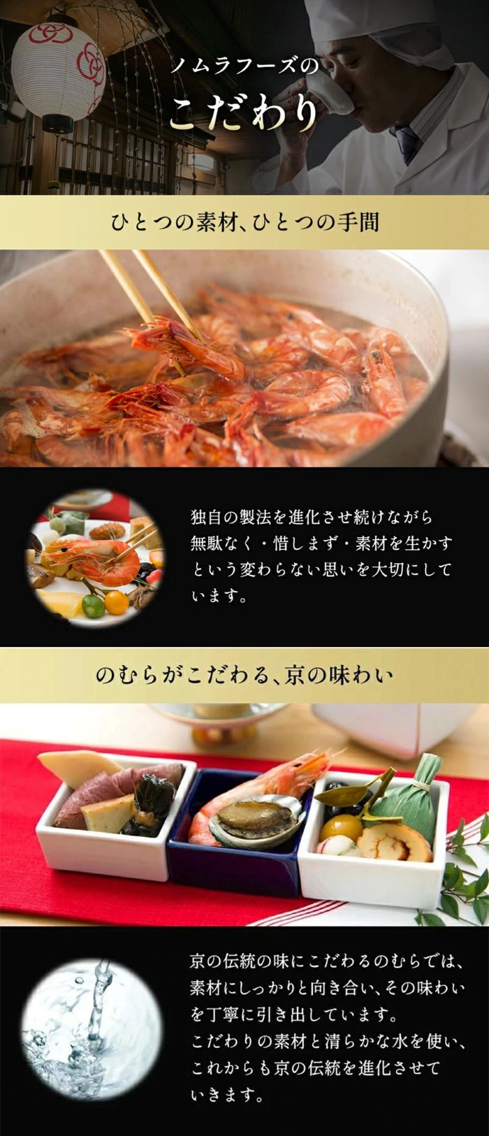昭和53年に創業し京都伏見区に工場を構え、日本料理の原点ともいえる京都で発達した「京料理」の伝統の味づくりを引き継いでいます。