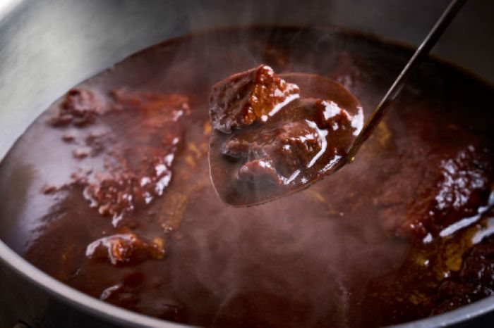 近江牛のすじ肉と香味野菜をじっくりと煮込み、3日間かけて旨味を引き出した後、隠し味のはちみつでコクと深みを加えています。