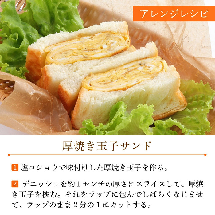 ※デニッシュ:開封後は賞味期限に関わらず、お早目にお召し上がりください。長期(3週間程度)保存される場合は、程よい大きさにしてラップに包み冷凍庫にお入れください。