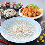 新鮮なとらふぐの刺身とまふぐの唐揚セットです。