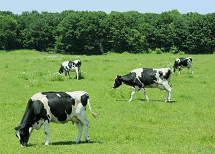別海町は生乳の生産量が日本一と言われています。のびのびと大切に育てられた乳牛のしぼりたての生乳は、おいしさもとびきりです!