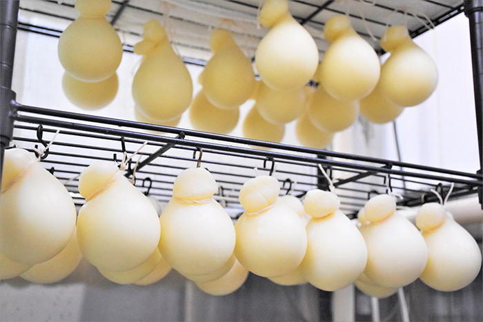 カチョカバロは十日ほど乾燥して燻製し、両面にしっかりと焦げ目をつけ中トロトロに焼いて召し上がれる、形のしっかりとしたものです。