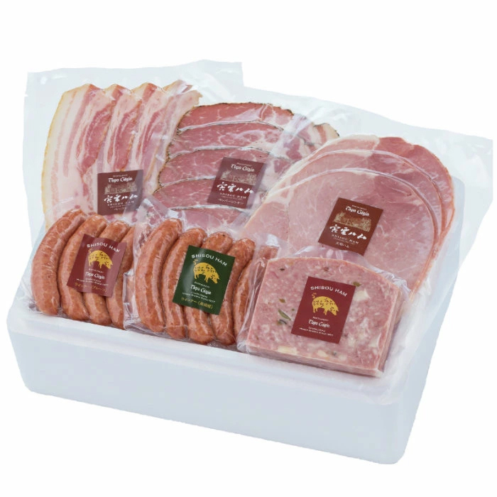 こだわりの国産豚を用いて、伝統的な手法で丁寧に仕上げたハム、ウインナーの詰め合わせです。