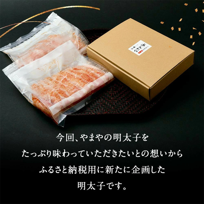 今回、やまやの明太子をたっぷり味わっていただきたいとの想いから、ふるさと納税用に新たに企画した明太子です。