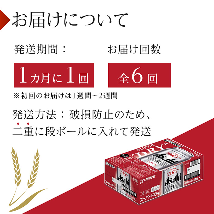 ・アサヒスーパードライ缶 350ml×24本 1ケース × 6ヶ月定期便