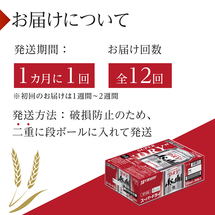 ・アサヒスーパードライ缶 350ml×24本 1ケース × 12ヶ月定期便