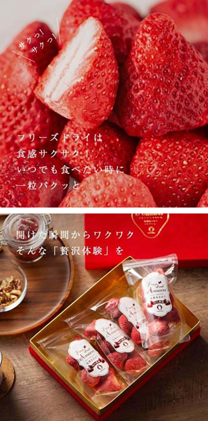 幸せがいっぱいに詰まった、完熟あまおうのフリーズドライをお試しください。