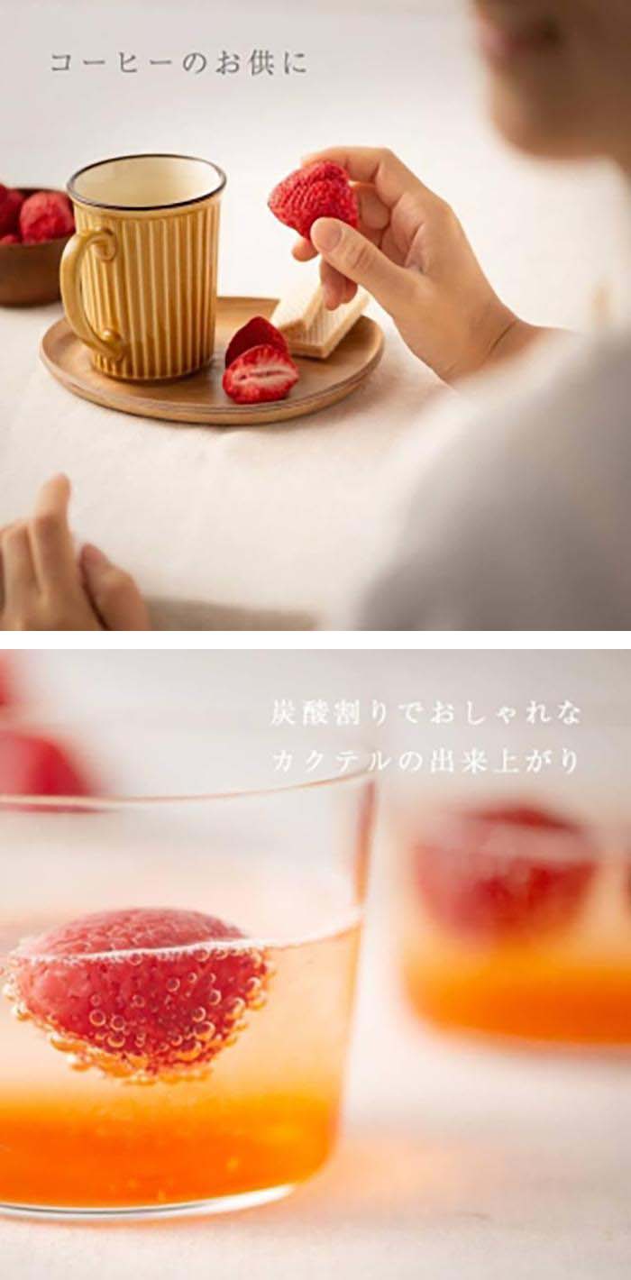サクサク食感なのに、まるで生の味わい!フリーズドライなら、季節関係なく、完熟あまおうが楽しめます。