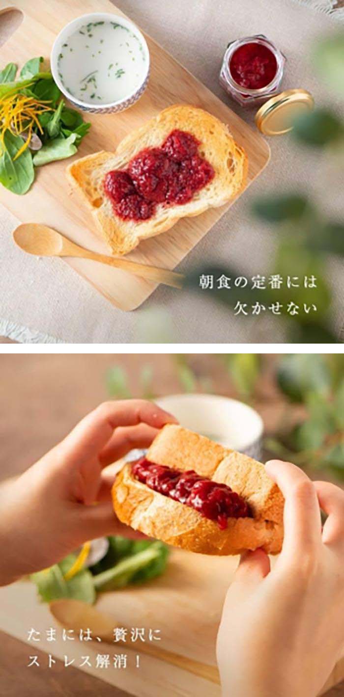 完熟あまおう85%、きび砂糖14%、レモン果汁1%、これだけです。