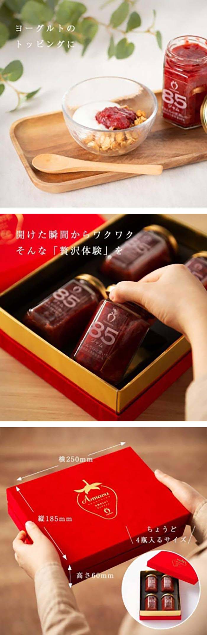 【商品名】 VIPボックス赤 完熟あまおう85%ジャムセット 4瓶入り