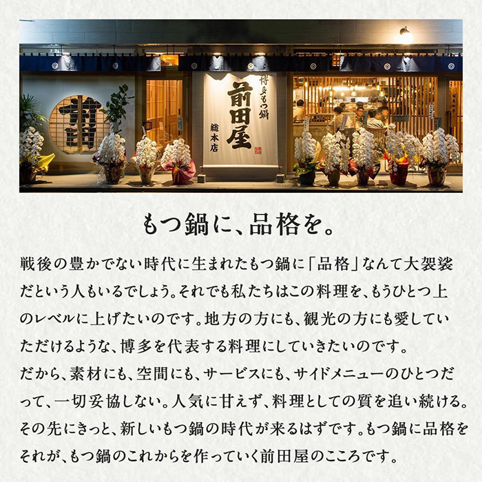 芸能人、野球選手御用達!本場博多の超人気モツ鍋専門店、博多もつ鍋 前田屋。