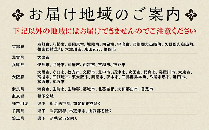 下記以外の地域にはお届けできませんのでご注意ください