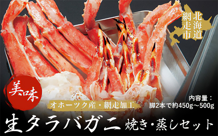 蟹の王様とも呼ばれるタラバガニの太脚2本約450g〜500gを生冷凍でご用意しました。