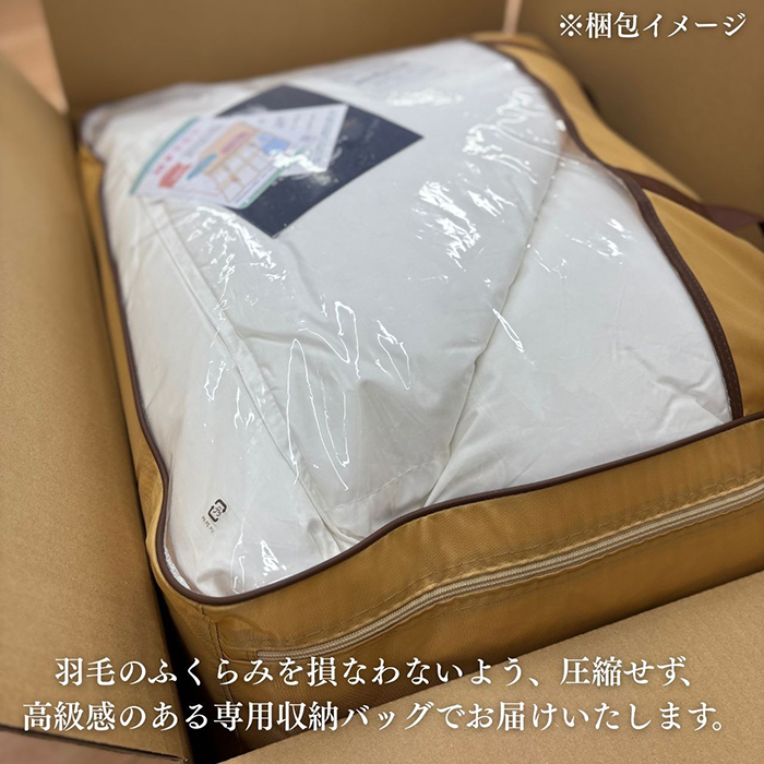 羽毛はポーランドで育ったホワイトマザーグースダウン95%を1.2kg入れています。