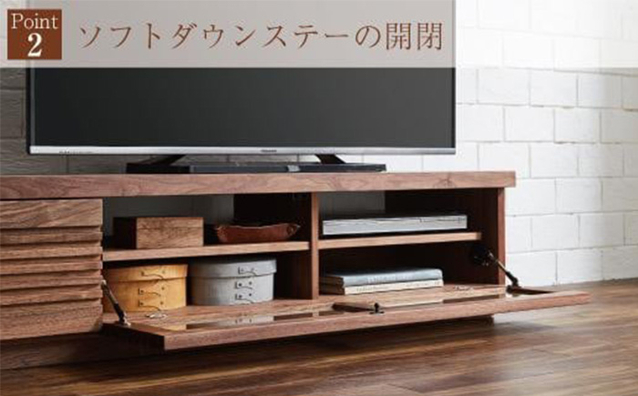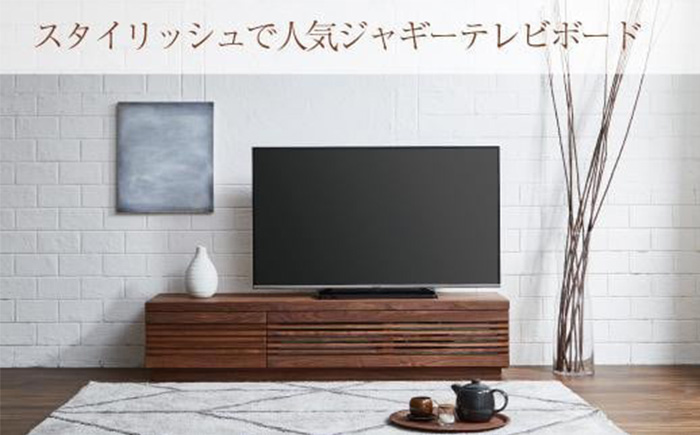 格子組の流れるような横ラインが印象的で、さまざまな室内空間にマッチする、ジャギーテレビボード。