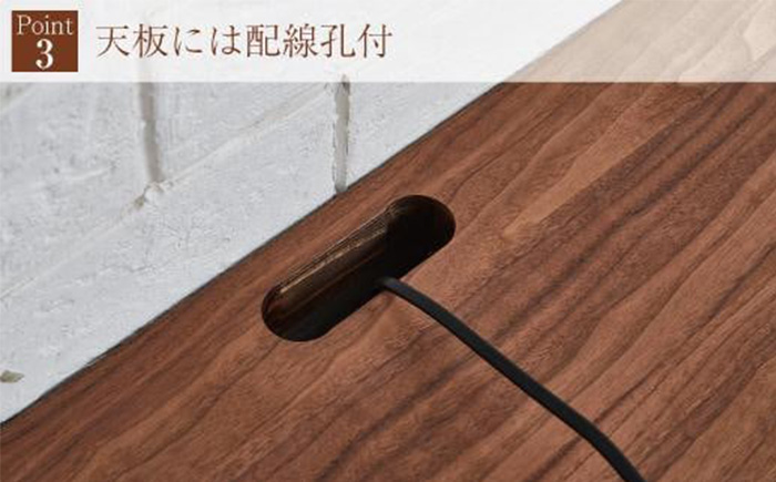 ■天板上の背側にはキャップ付きの配線孔を、底板の背面には切り欠きを設けていますので、配線通しに便利です。