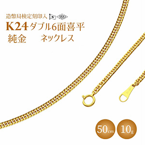 純金喜平は、18金喜平と異なり、本物の山吹色の深い輝きが特徴的です。